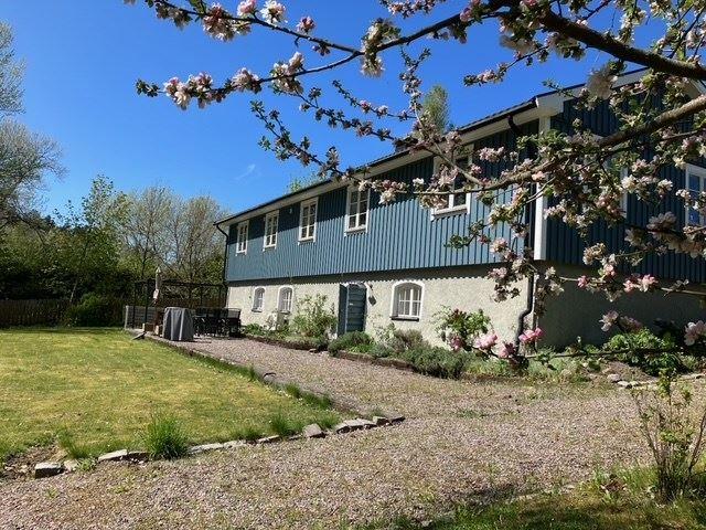 På tomten finns ett rymligt fristående garage med förråd och carport, samt laddstolpe för elfordon. Den vackra trädgårdstomten pryds av frodig växtlighet och flera fruktträd som bjuder på riklig skörd under säsong. Detta är ett hem för dig som söker något utöver det vanliga – ett boende med historia, karaktär och en naturskön miljö som verkligen måste upplevas på plats.