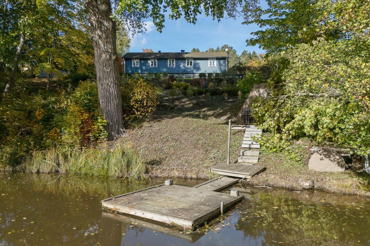 Huset är placerat lite i skymundan från gatan, vilket skapar en privat och lugn atmosfär. Med sitt strandnära läge och egen brygga kan du njuta av morgonkaffet medan vattnet stilla glittrar i solen – en oas för både avkoppling och inspiration.