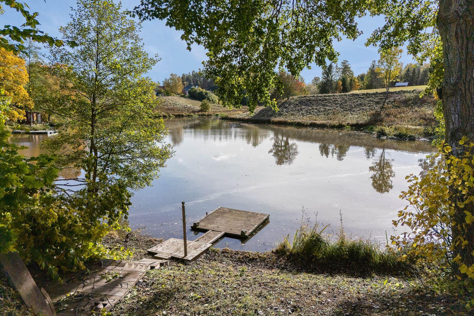 Välskött villa med anor från 1300-talet, strandnära läge med egen brygga och härlig vy över Storån