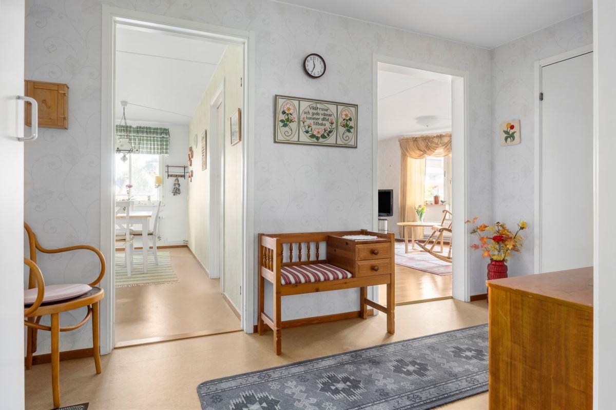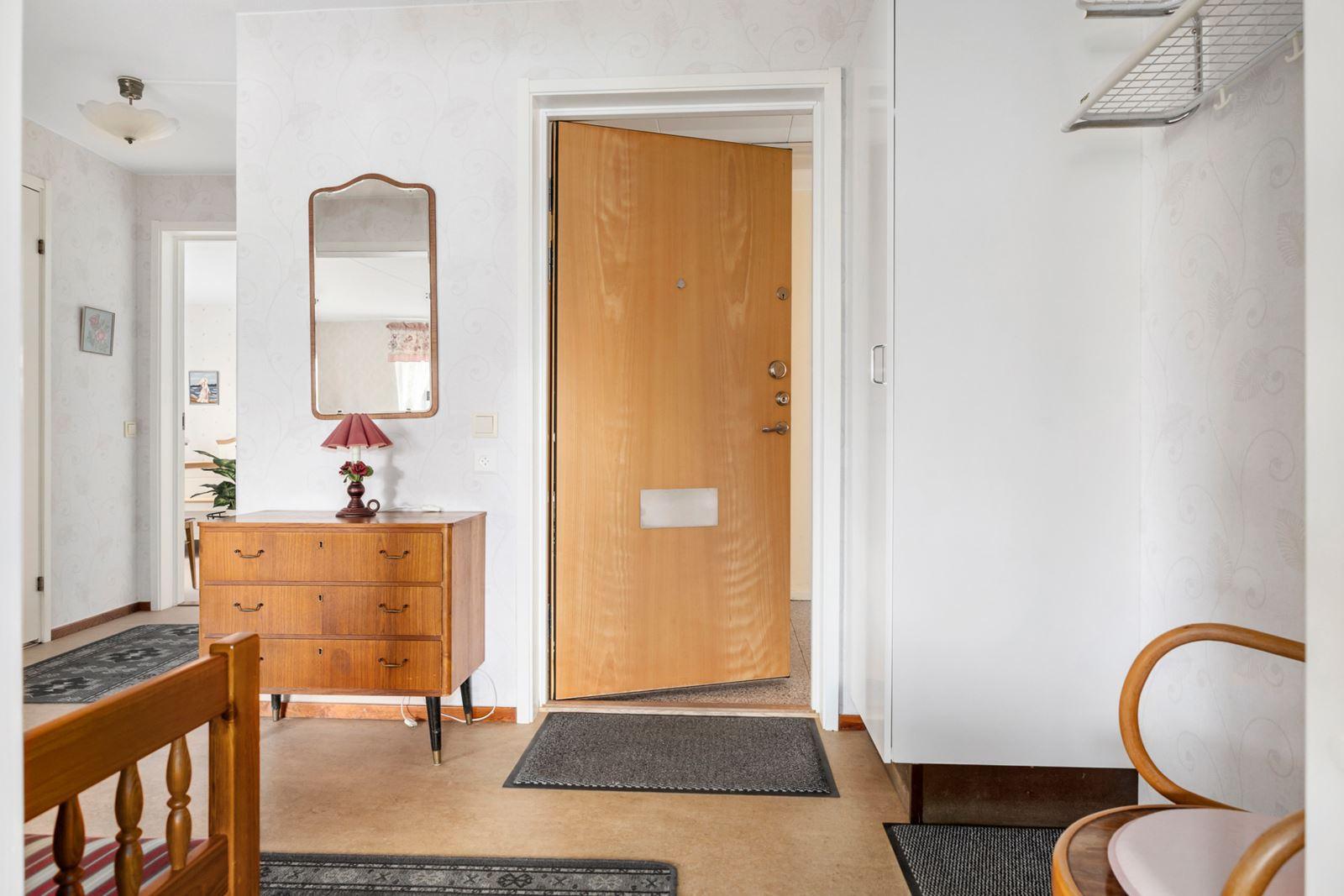 - HallHall med linoleummatta på golvet. Avhängningsdel och städskåp.