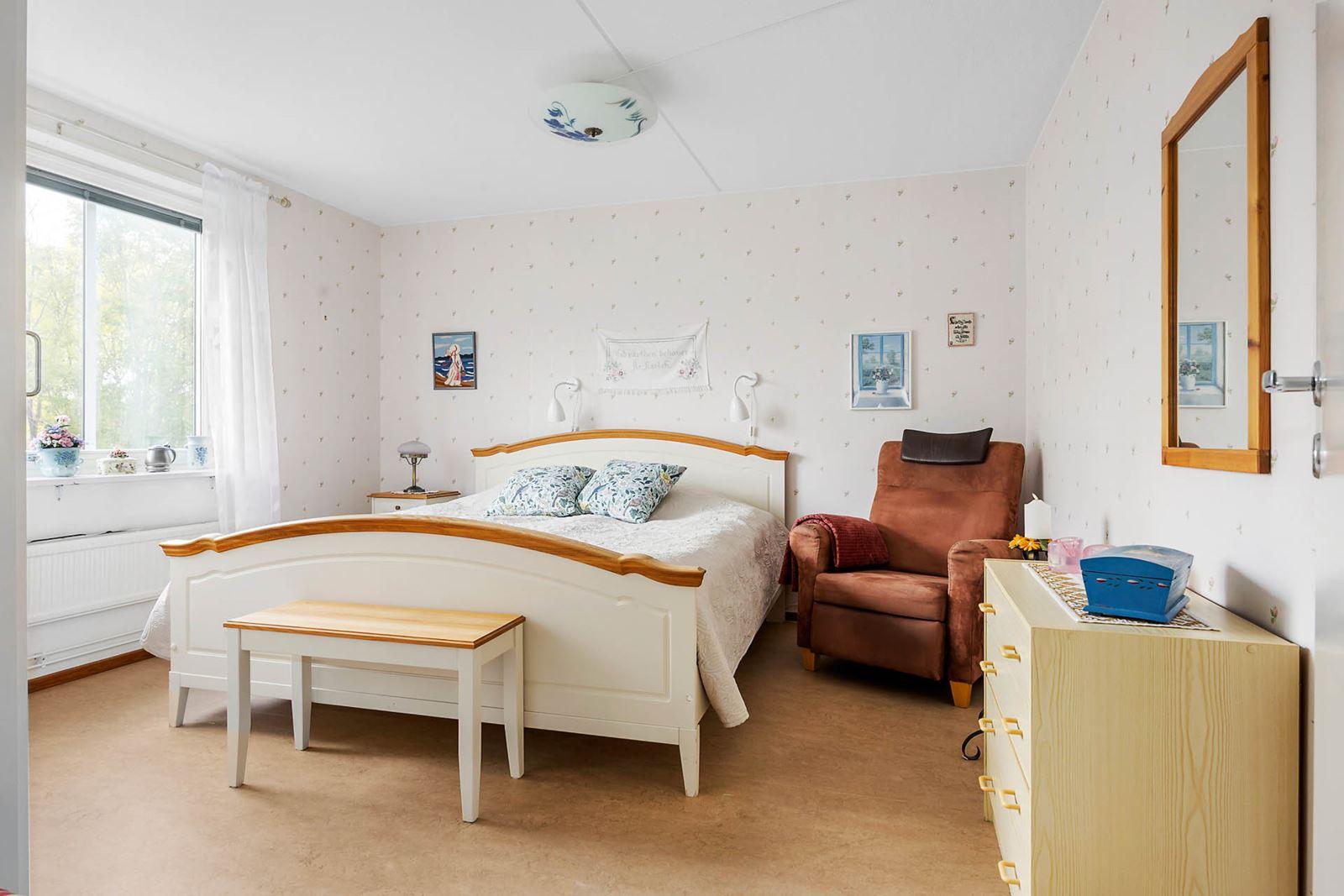 - Sovrum 2Sovrum med linoleummatta på golvet och en garderob samt ett klädskåp.