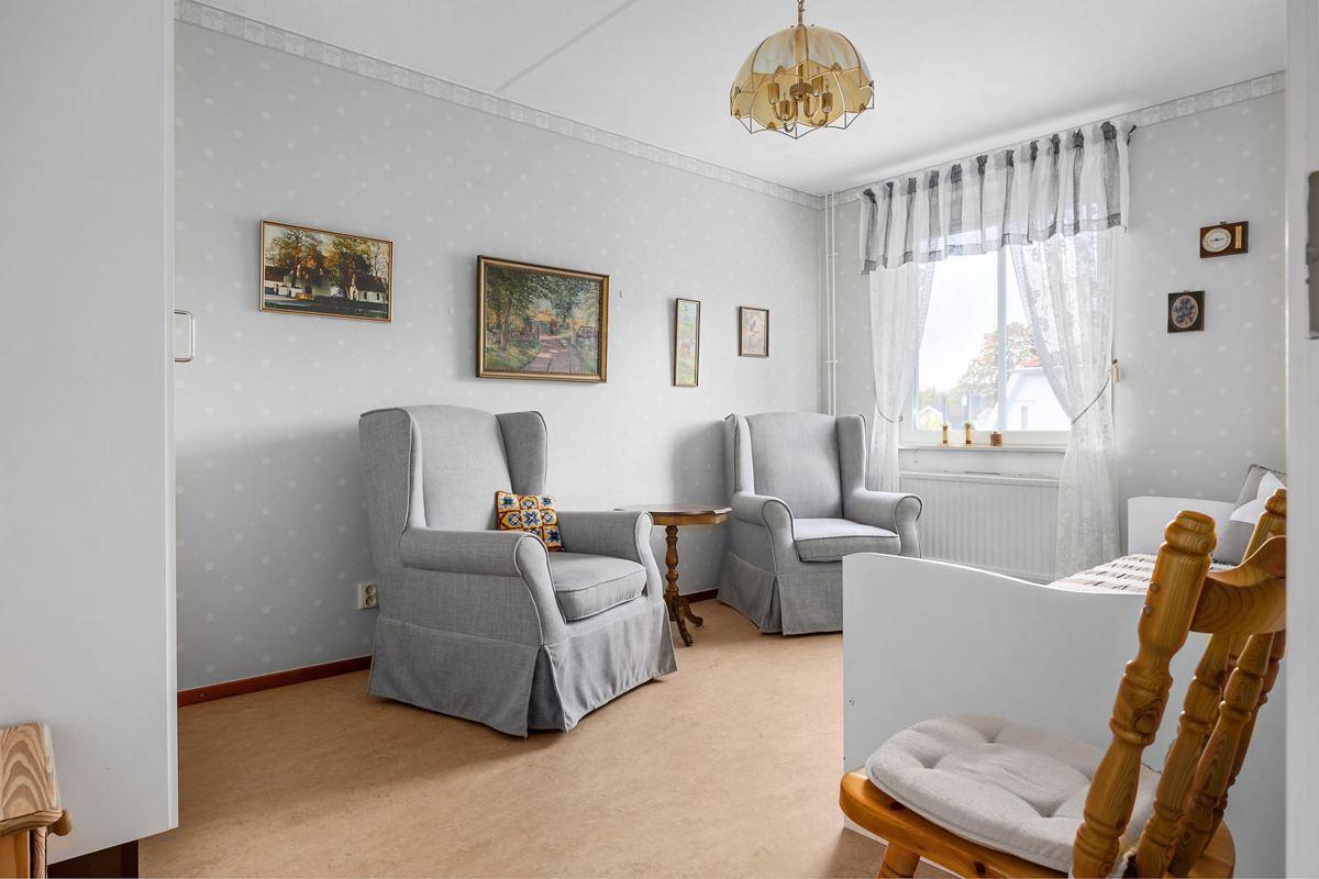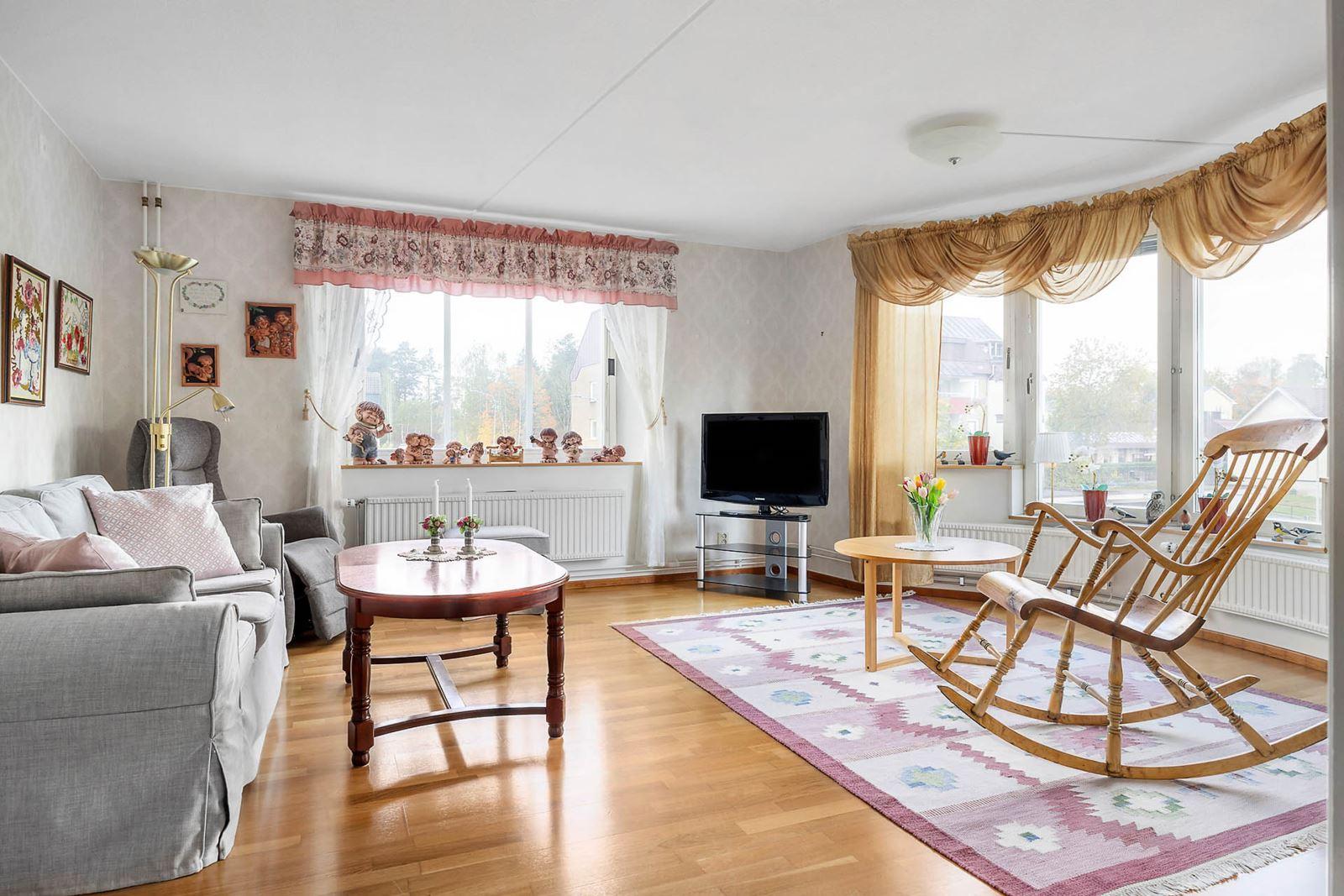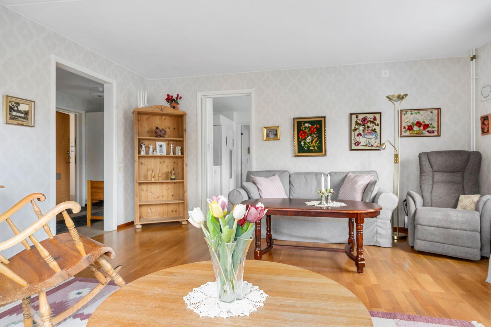- VardagsrumLjust vardagsrum med parkettgolv.