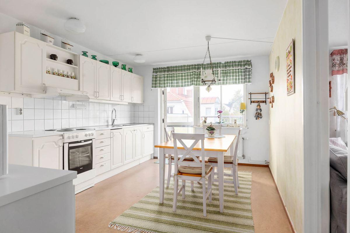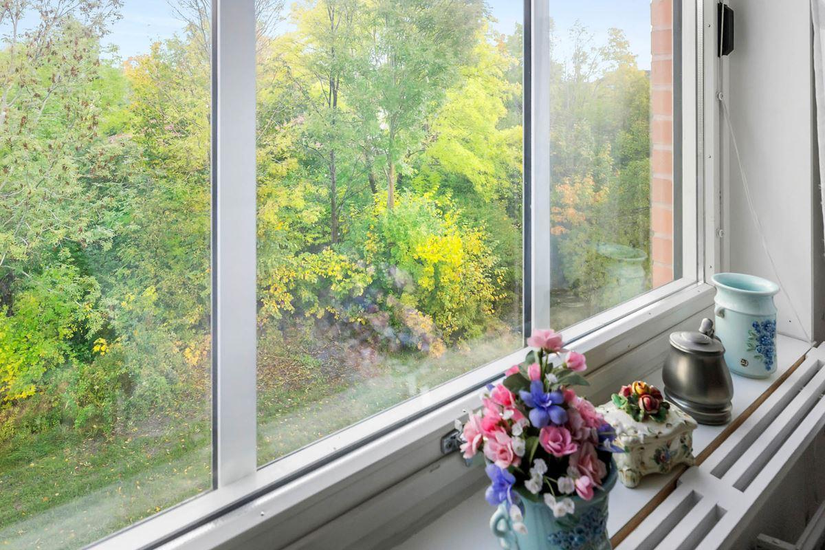 Välkommen till en ljus och trivsam gavellägenhet med balkong och utsikt på en sida mot grönskande ridå, endast gång-och cykelväg nedanför. Köket är rymligt med matplats och utgång till balkongen. Ljust vardagsrum med ljusinsläpp från två väderstreck. I övrigt finns två rymliga sovrum, en praktisk klädkammare samt duschrum med tvättmaskin. Bekävmt med hiss till våningsplanet lägeheten ligger på. Mer centralt och lugnt kan du inte bo än här ! Du får gångavstånd till affärer, vårdinrättningar, restauranger och fina strövområden utmed sjön Bönnern eller i den närbelagda slottsparken.