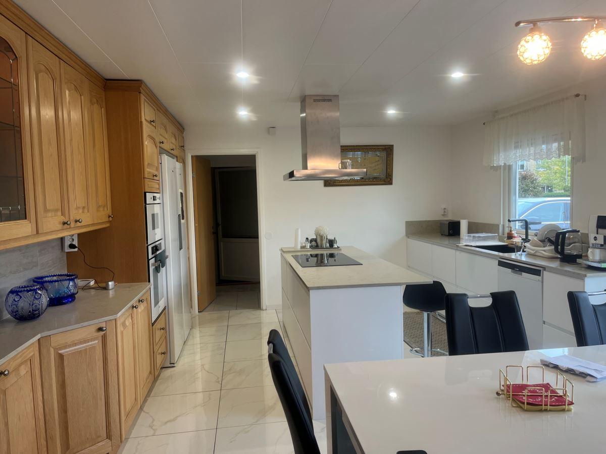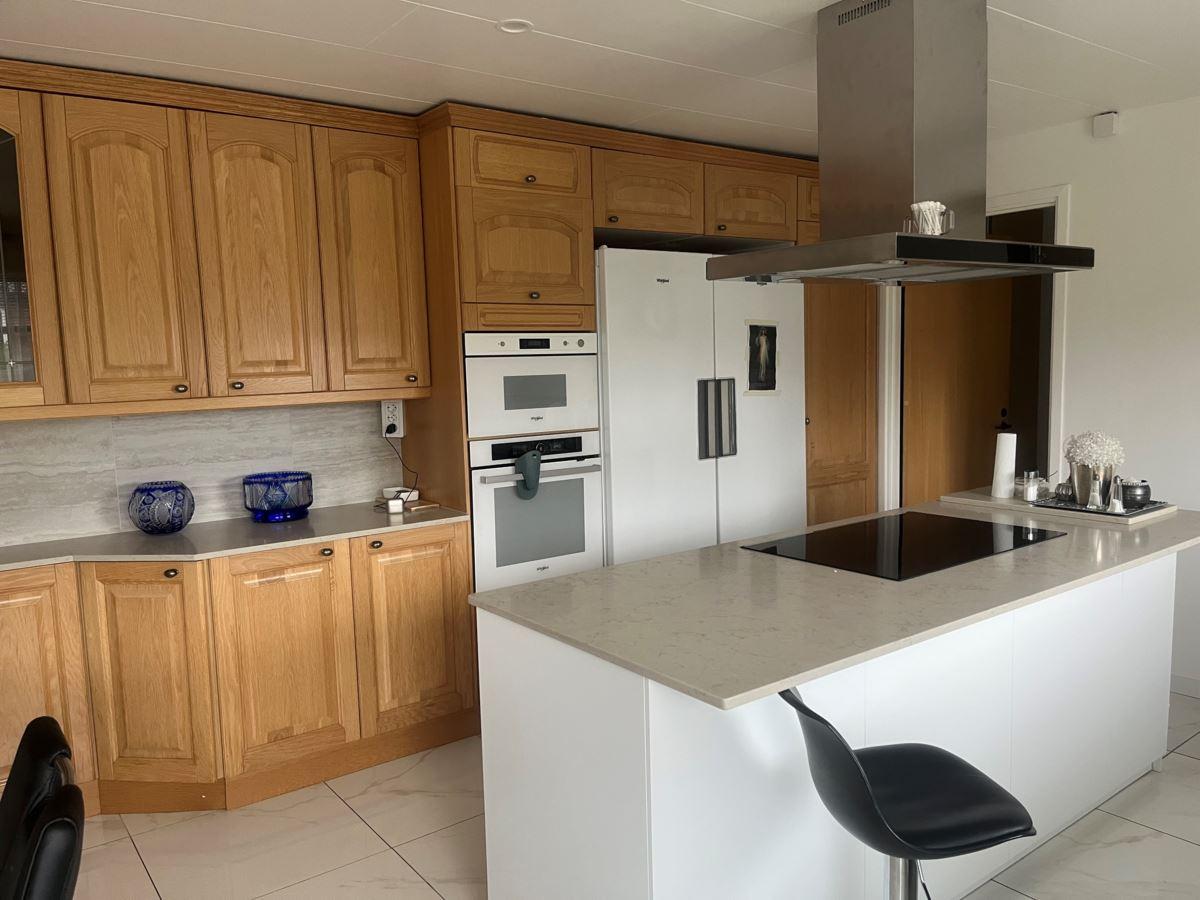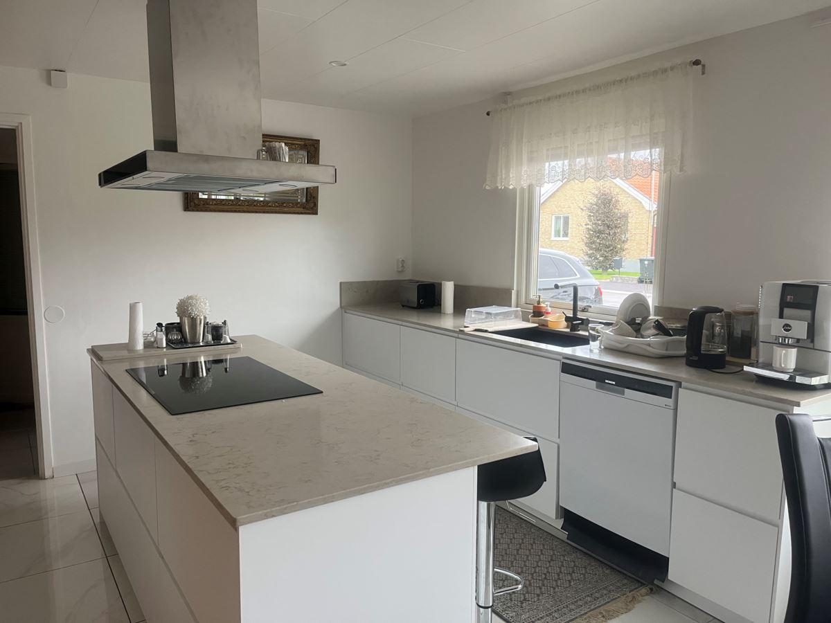 - Stort kök med köksö och separat matplatsKlinkergolv vattenburen golvvärme, massiva ekluckor, kakel ovanför köksbänk i granit. Spishäll med induktion (Bosch) -23, spisfläkt, kyl och frys (Whirlpool) -20, diskmaskin (Siemens) -23, varmluftsugn (Whirlpool) -20 samt mikro (Whirlpool) -20