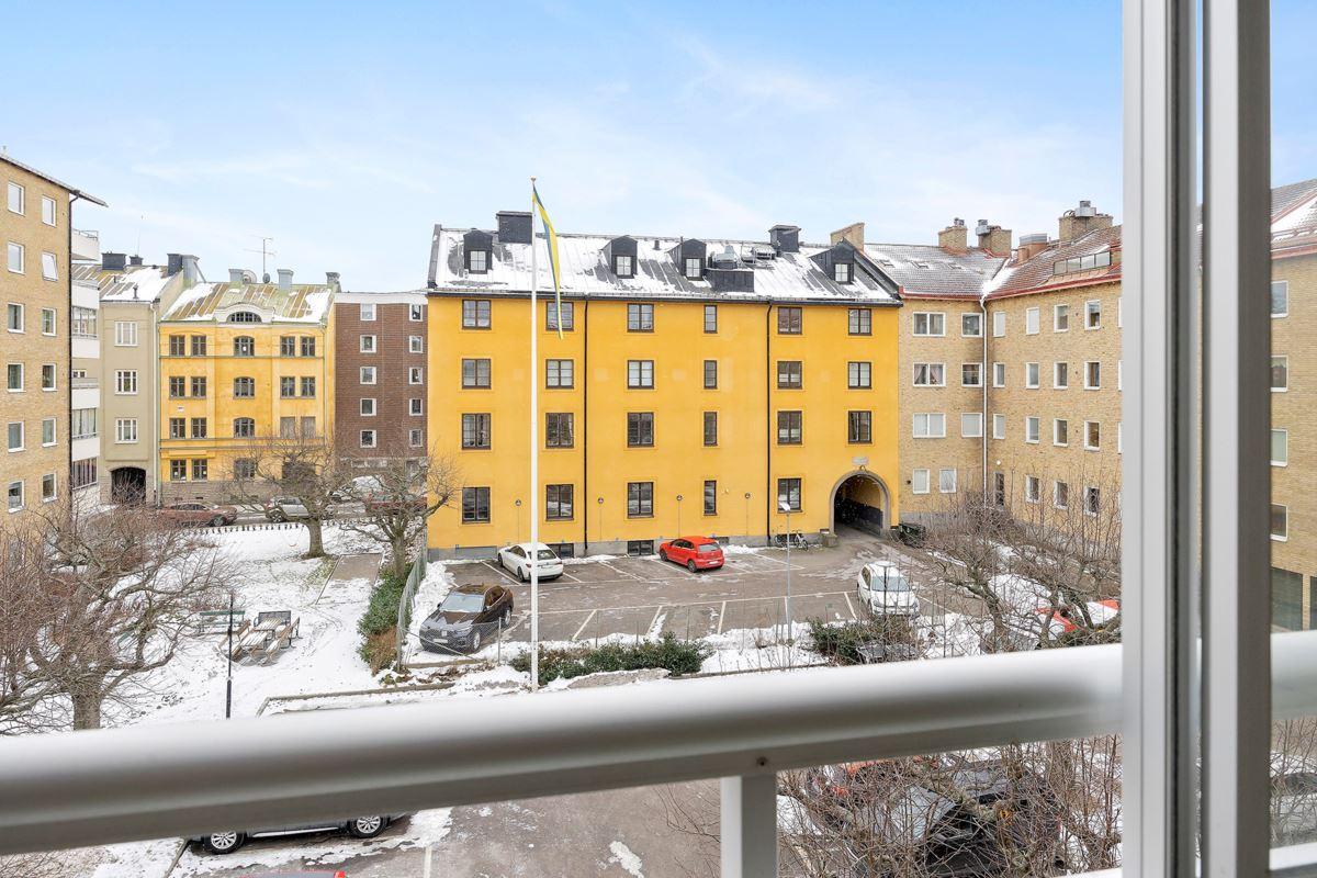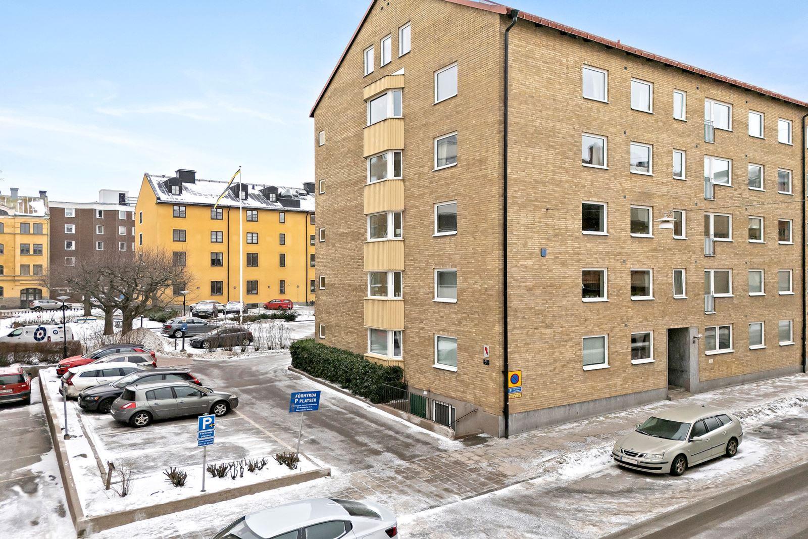 - BeskrivningLjus och högt belägen lägenhet med gavelläge och fönster åt tre håll.