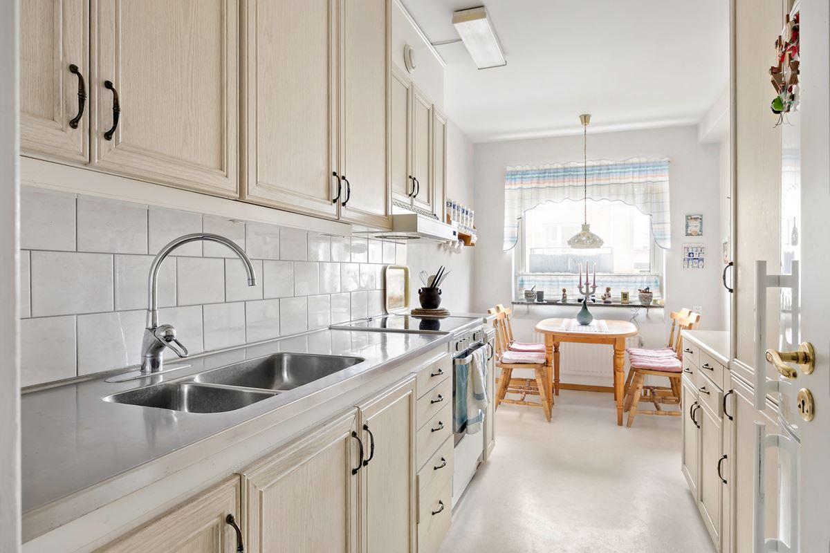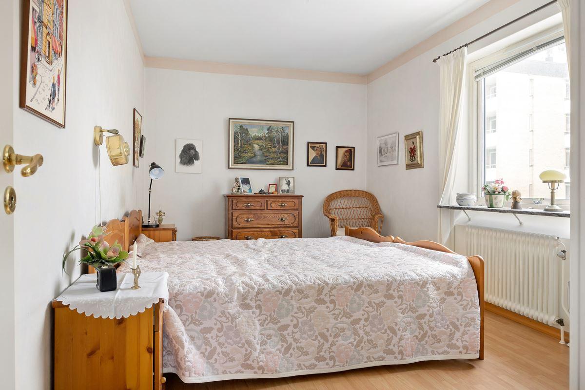 Högt och trevligt läge näst högst upp i huset med hiss. Gyllene tillfälle för den som vill sätta sin egna prägel i lägenheten.