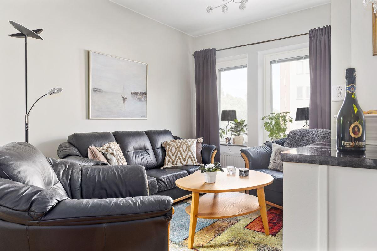 Välkommen till en fräsch och ljus gavellägenhet om 4 rok. Lägenheten har öppen planlösning mellan kök och vardagsrum och genomgående parkettgolv. Tre rymliga sovrum med gott om förvaring. Helkaklat badrum med golvvärme och även utrustat med tvättmaskin och torktumlare, i anslutning till badrummet finns även en gästtoalett. Ett lugnt och avkopplande läge med närhet till butiker, kommunikationer och centrum.