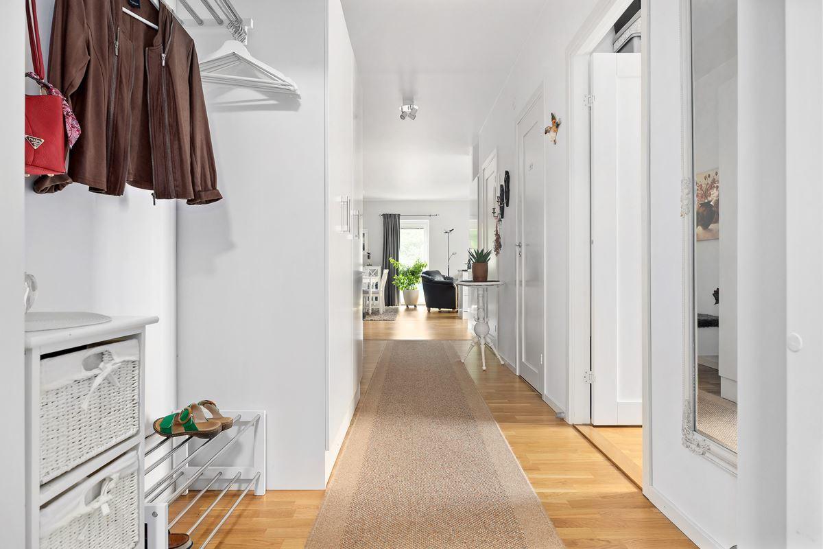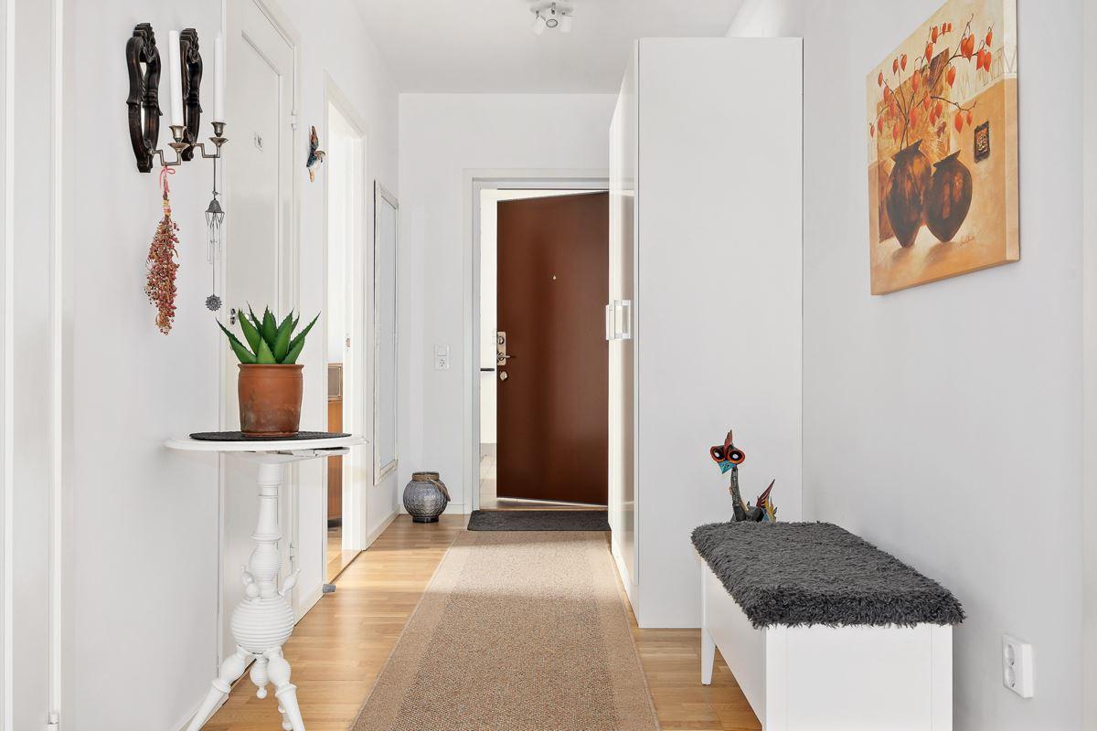 • HallHall med parkettgolv och målade väggar. Två garderober och en klädkammare.