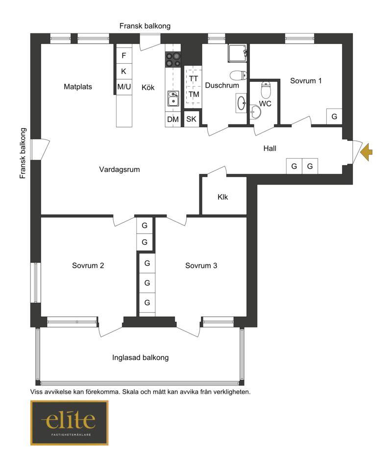 • KökKök med parkettgolv och målade väggar samt fransk balkong. Bänkskiva i granit och ovan bänkskiva sitter kakel. Utrustat med kyl, frys, inbyggd micro, ugn, häll, fläkt samt diskmaskin.