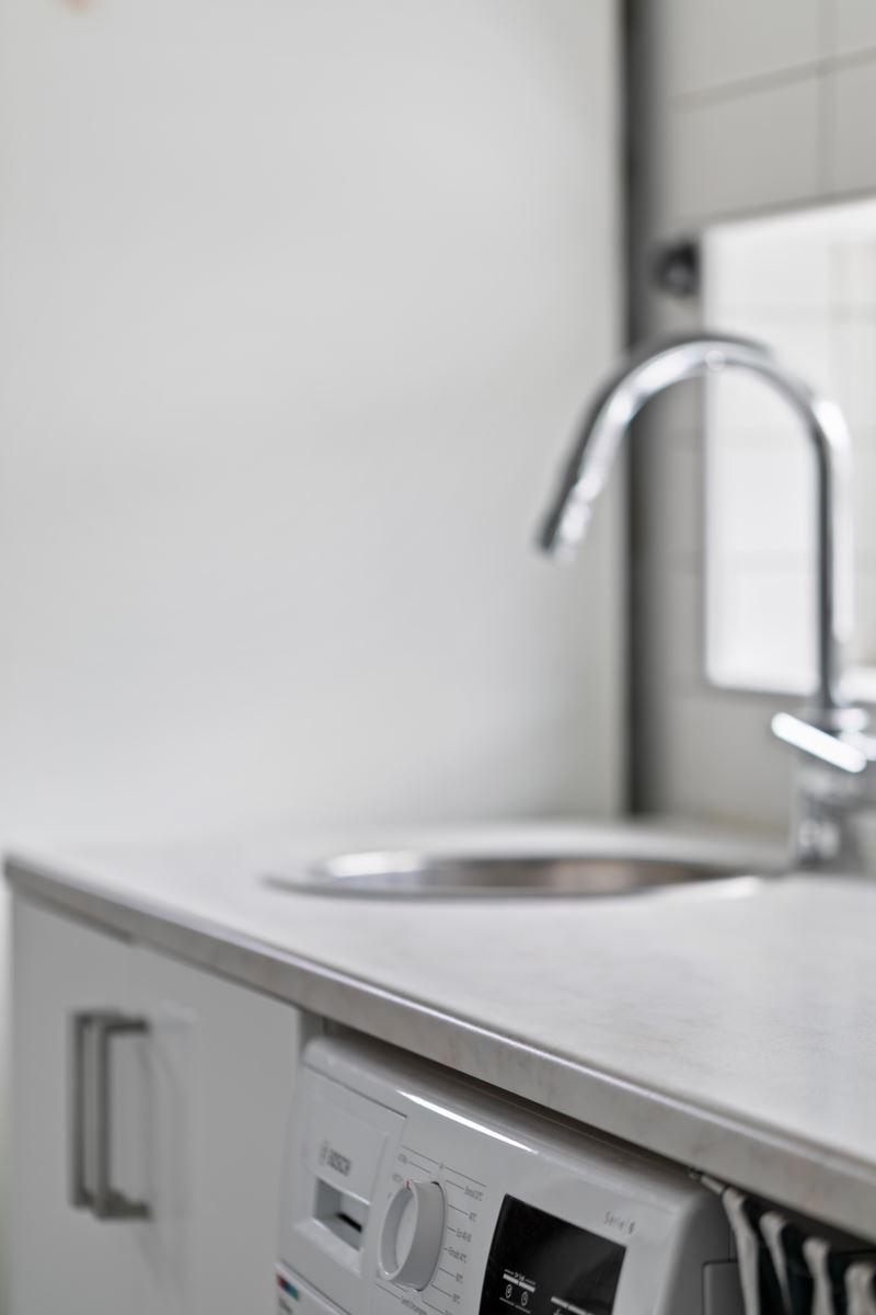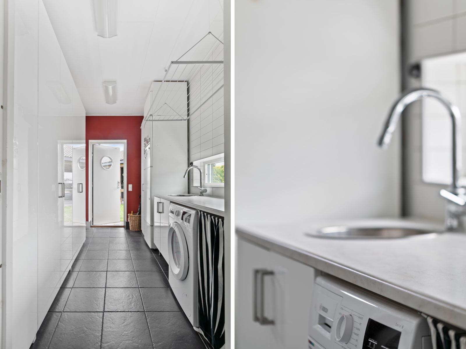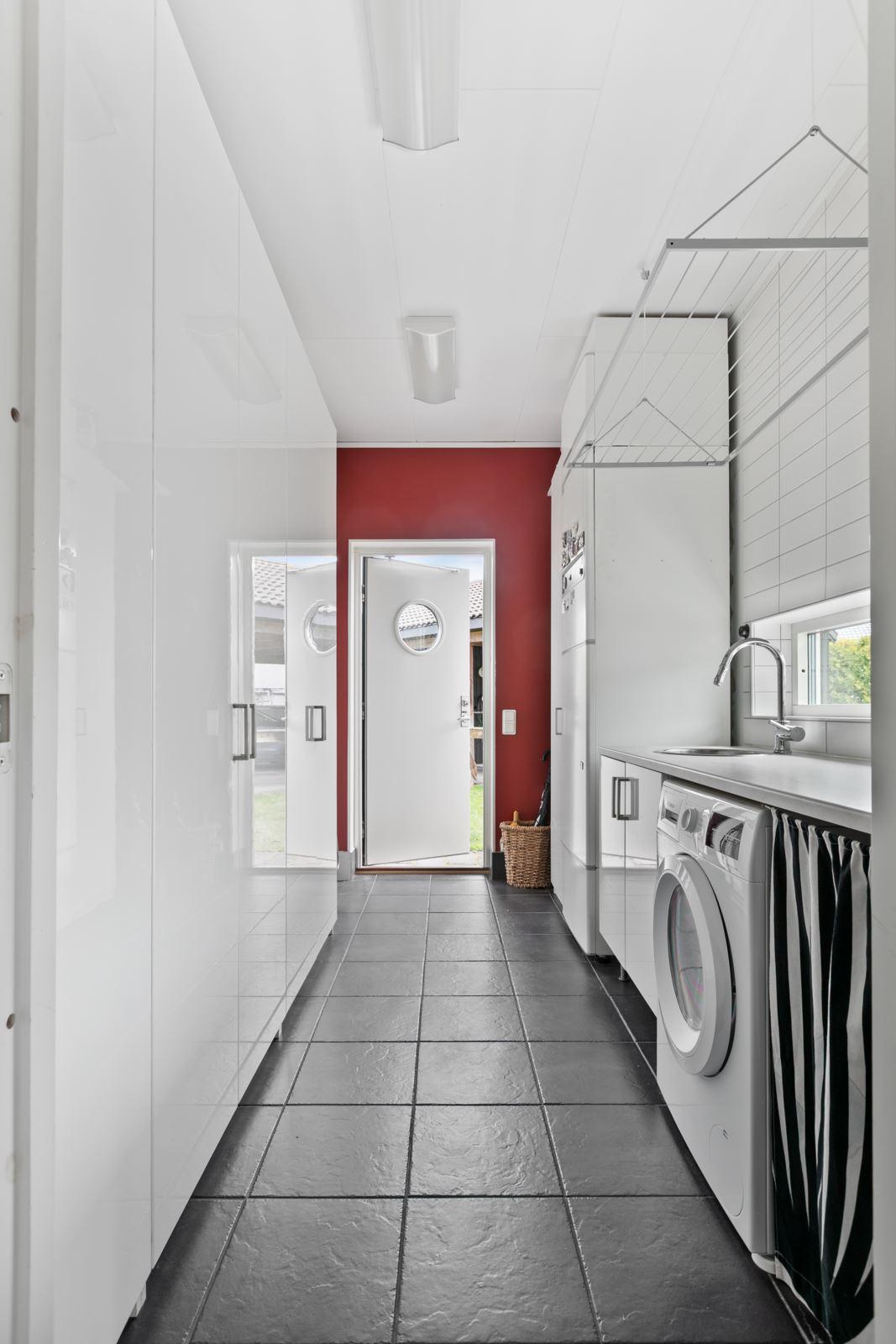 • Groventré/TvättstugaKlinkergolv och delvis kakel på vägg mot arbetsbänk. Utrustning: Tvättho, tvättmaskin, torktumlare samt flertalet garderober med bra förvaring.