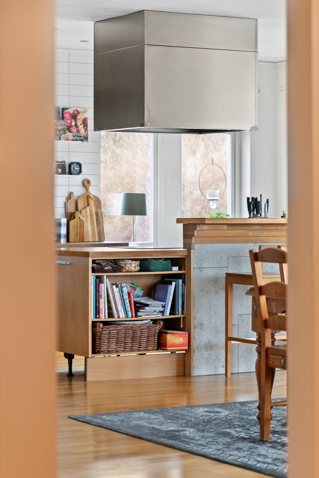 Hjärtat i hemmet är det stilrena köket från Marbodal – en naturlig samlingsplats med köksö som öppnar upp mot vardagsrummet. Här kan du laga mat och umgås samtidigt som du njuter av den rogivande utsikten över den öppna ängen utanför. De stora sällskapsytorna gör huset perfekt för både vardagsliv och sociala tillställningar.
