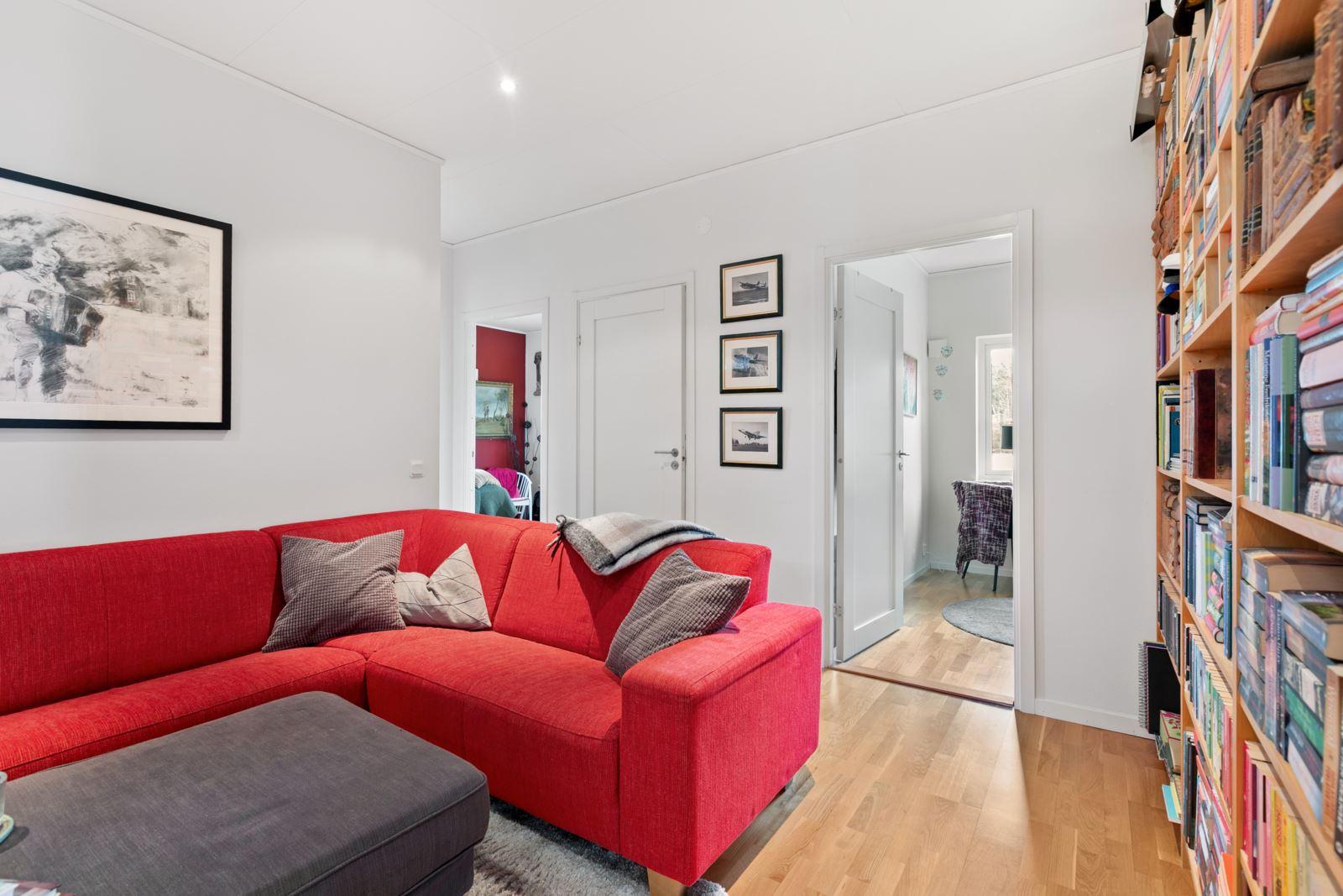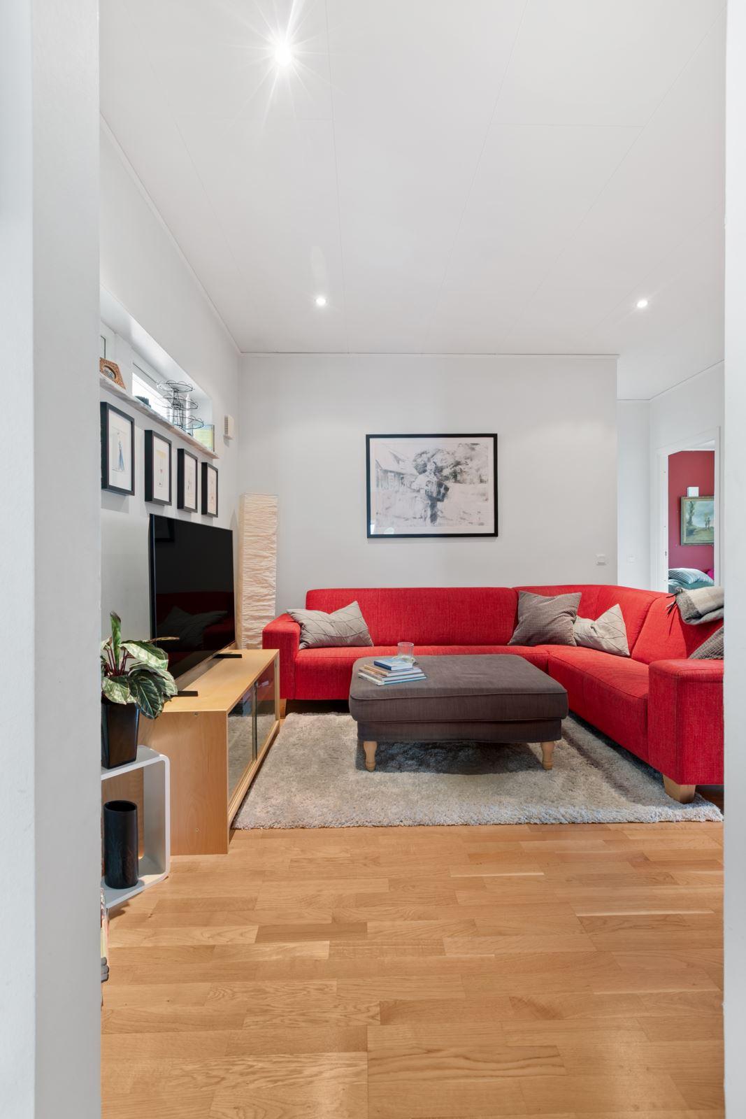 • Vardagsrum med ryggåstakEkparkett med utgång till altan under tak