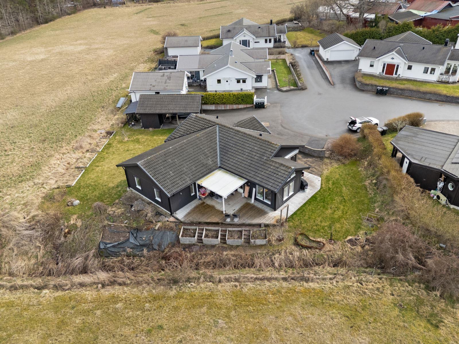 • InformationVackert och fridfullt beläget mot öppen äng och insynsskyddat läge som sista hus vid återvändsgata!
