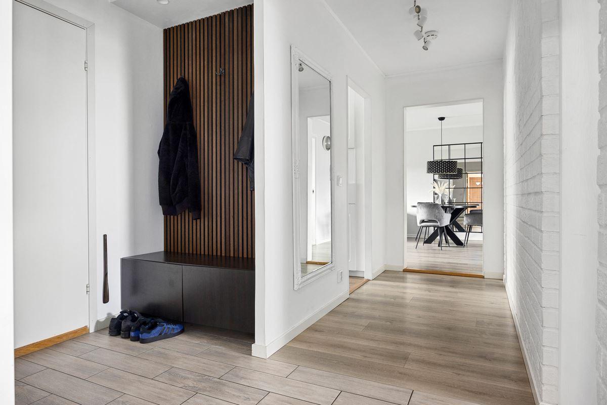 • Hall med avhägningsdelKlinker vid entrén samt laminatgolv. Extra hall med egen ingång och garderobsvägg