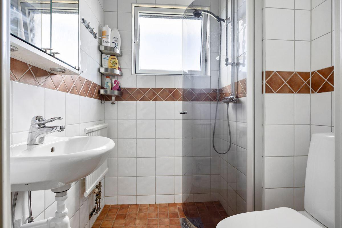 • DuschrumKakel och klinker på golv. Utrusning: Toalett, handfat samt badrumsspegel