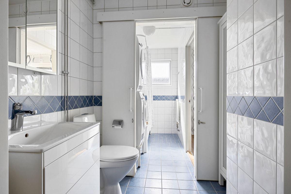 • Stort badrum med separat WcKakel och klinker på golv. Utrustning: Toalett, handfat i separata Wc. Badkar samt tvättmaskin och torktumlare