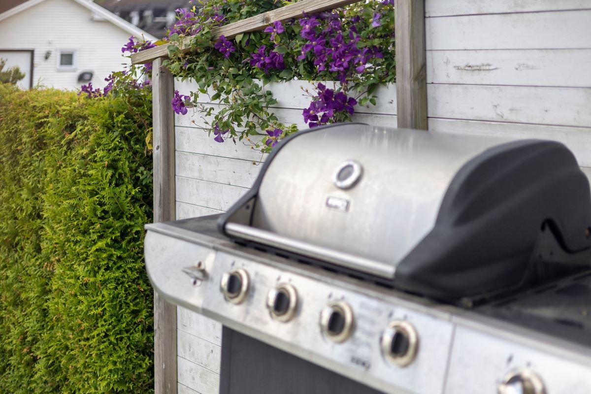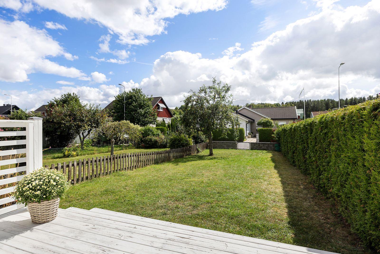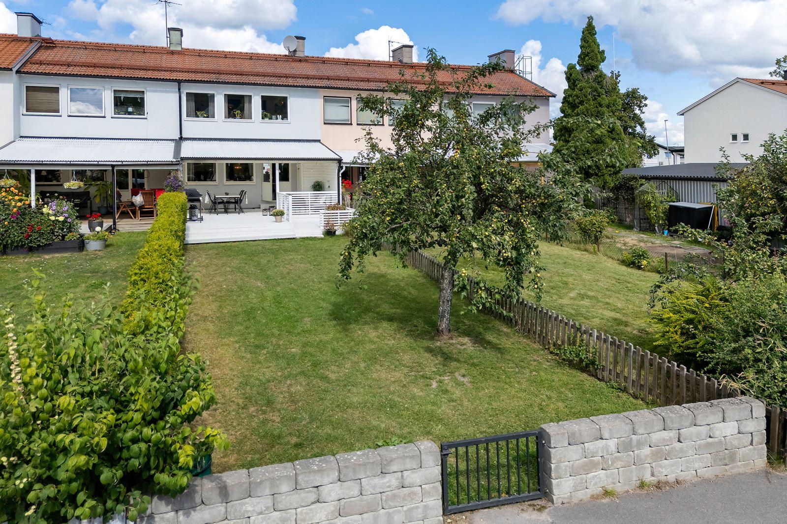 • Övrigt tomtLättskött och plan trädgårdstomt och stenlagd framsida och murkrukor