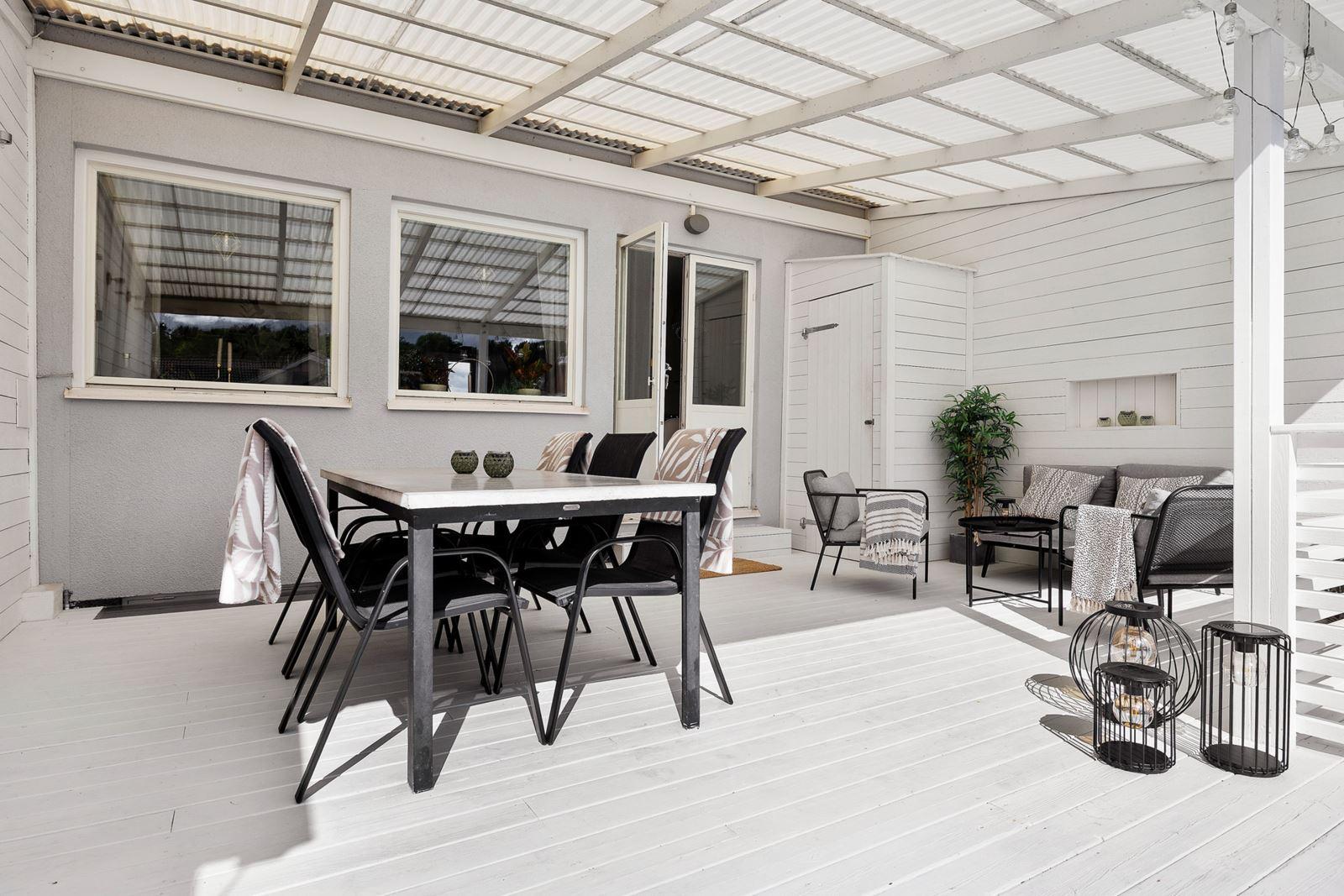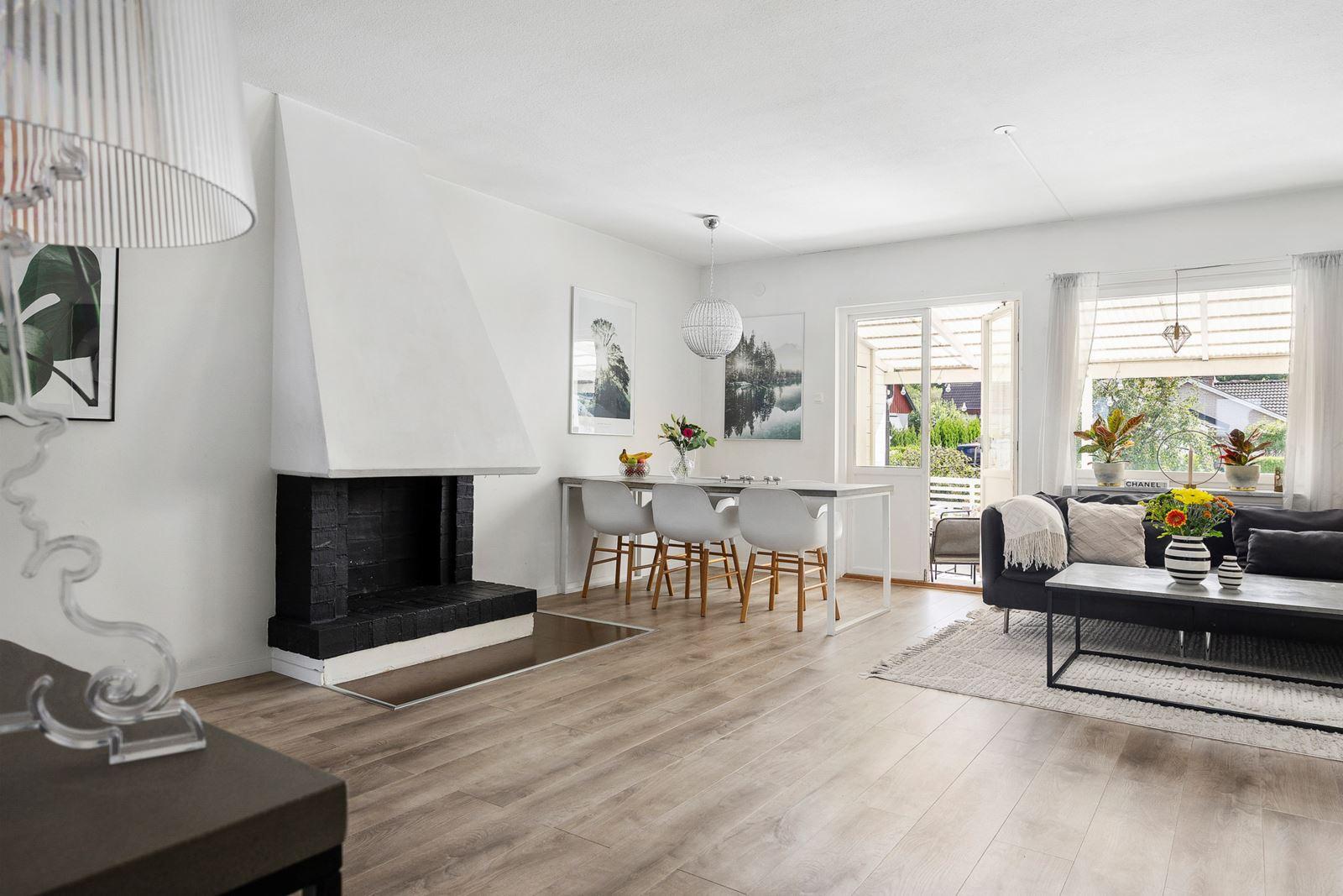 • Vardagsrum med utgång till altandäckLaminatgolv samt öppenspis (ej provtryckt)