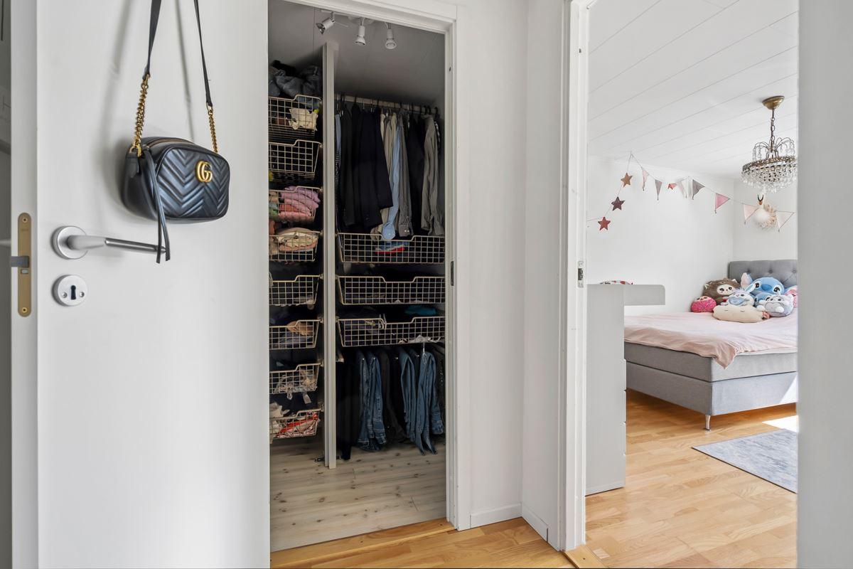 • Möblerbar hallEkparkett samt klädkammare hyllsystem, trådbackar och klädhängare