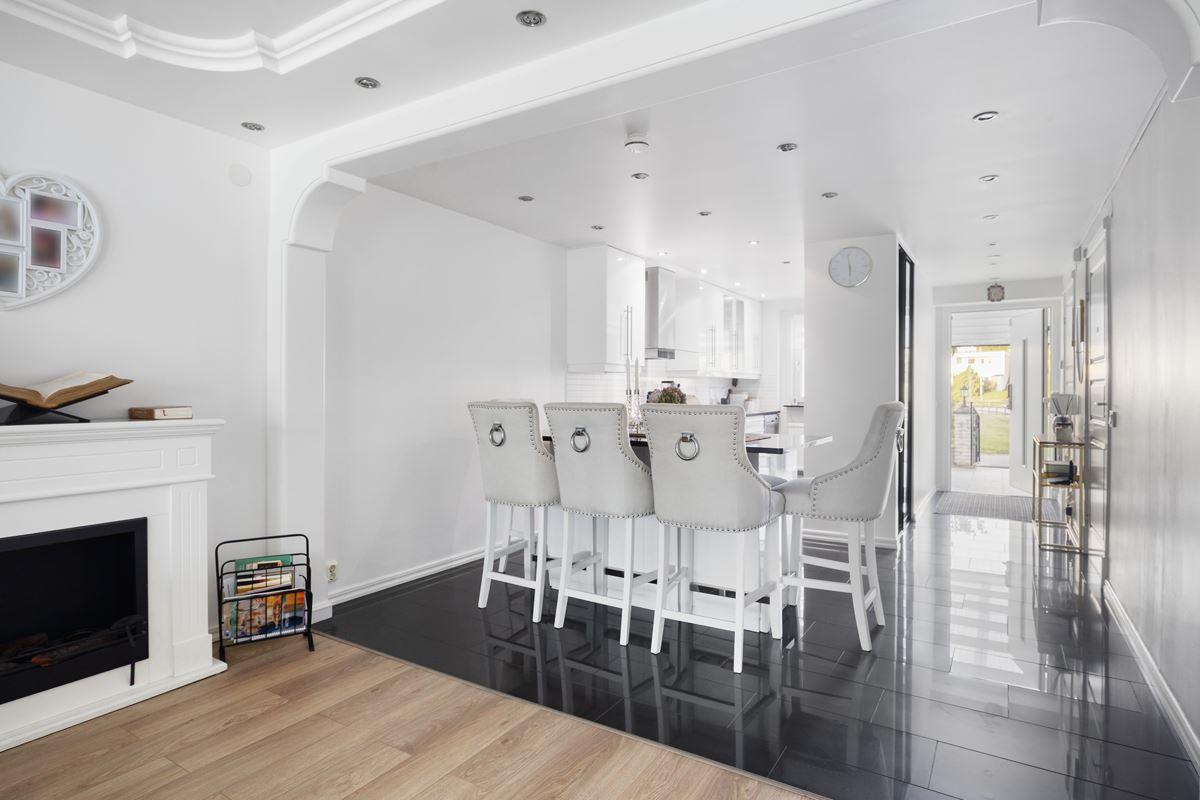 - InformationSuperfin och tillbyggd radhus i två plan med hörnläge. Stor och härlig inglasad altan mot baksidan och altan under tak mot framsidan.