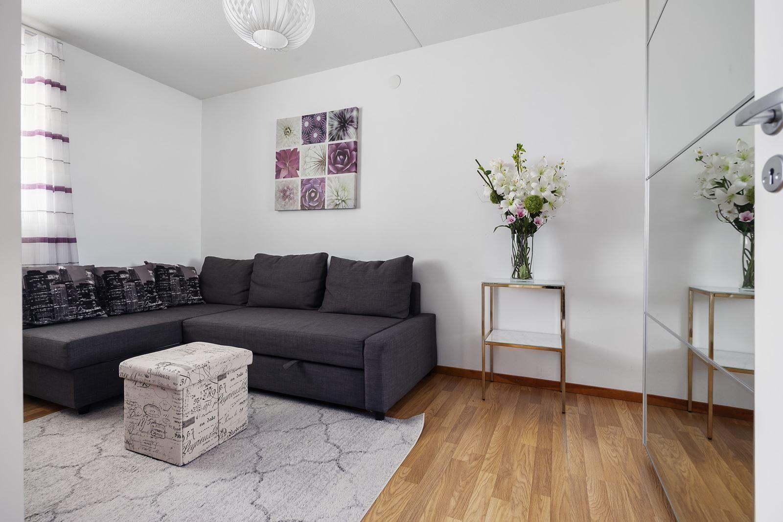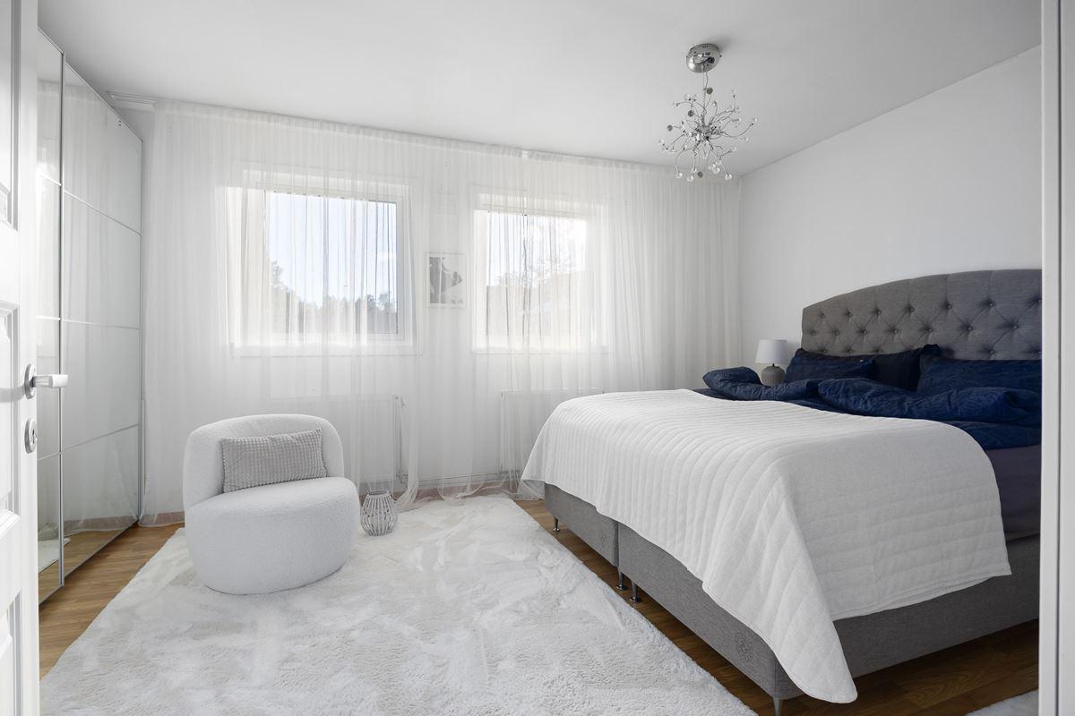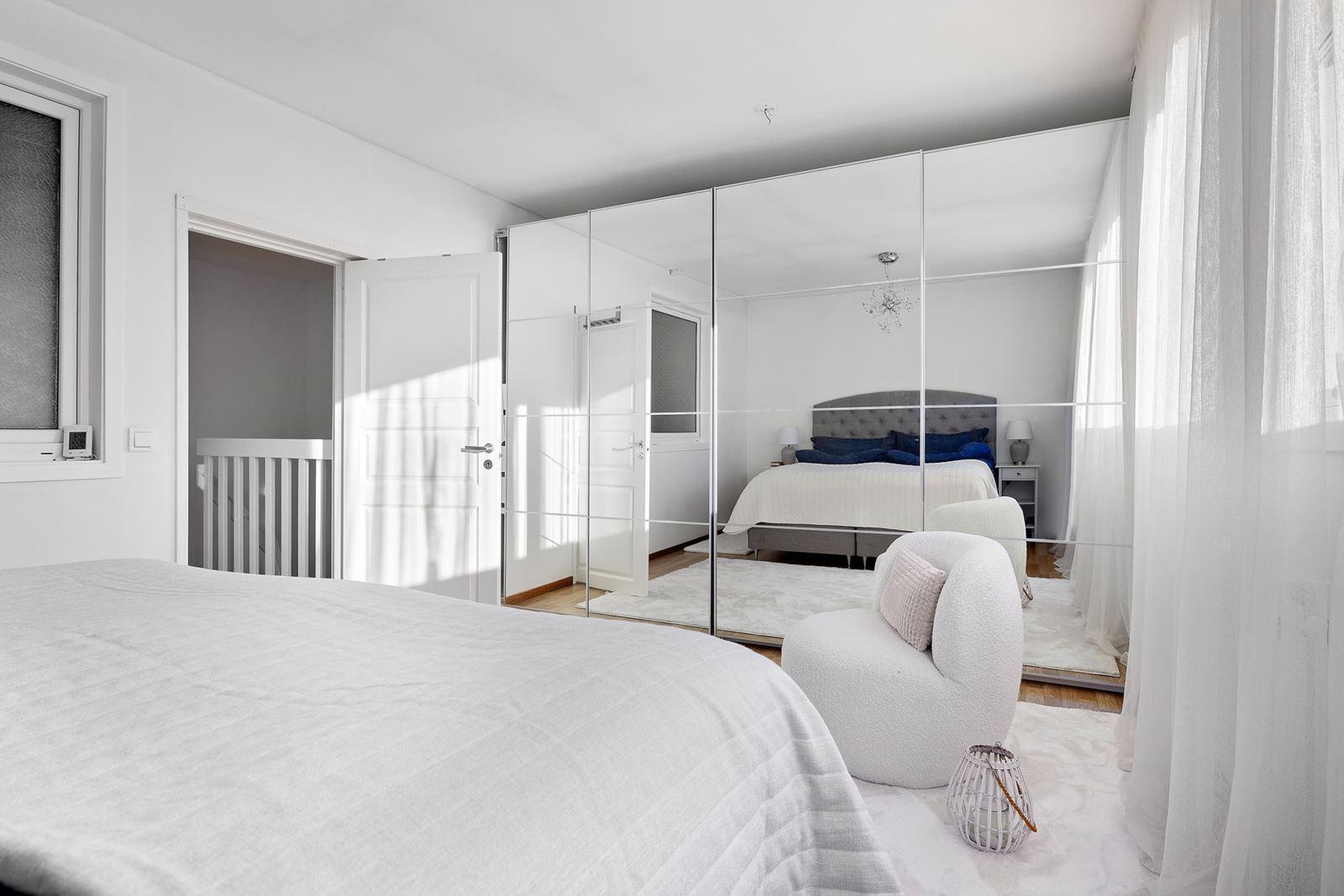 - SovrumLaminatgolv och stor skjutbar garderobsvägg